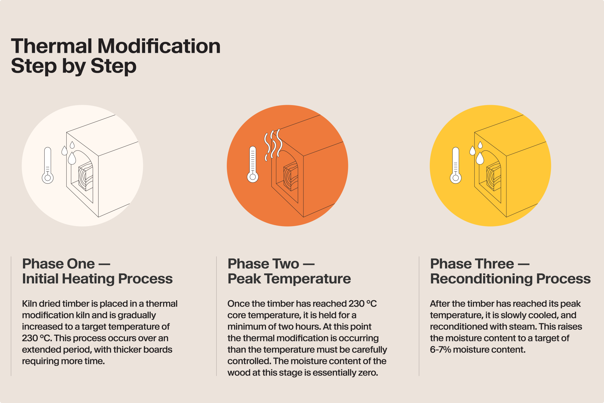Heat tempering (also known as thermal modification) is a game-changer. It boosts the timber’s stability and lifespan, turning it into a stronger, more environmentally responsible building material. Since the technology was first developed in the ‘90s, thermally modified wood has been growing in popularity, and for good reason.